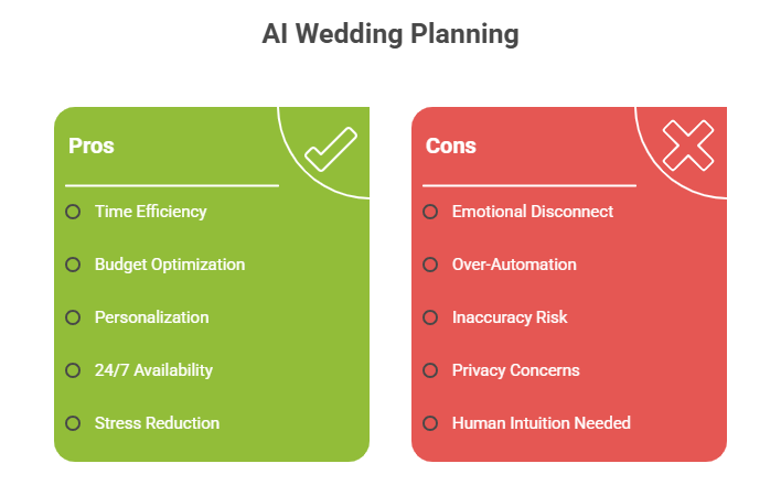 Automation – AI streamlines repetitive tasks like RSVPs, seating charts, vendor emails, and budget tracking.